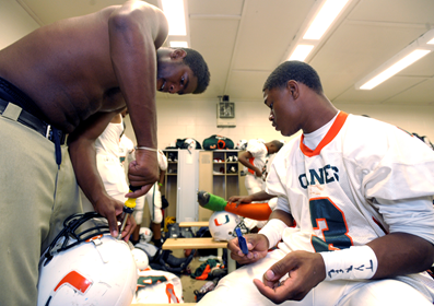 This photo, which appeared in the Detroit News in the Fall of 2010, shows a player adjusting his helmet so another player could use it. The article went on to explain that the high schools in the City of Detroit did not have access to the amount of funding required to allow those students, who wanted to enter a sport, to do so due to the lack of proper equipment and salaries for coaches.