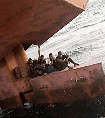 Nigerian migrants spent 14 days stowed away in the space above a ship rudder before they were discovered.