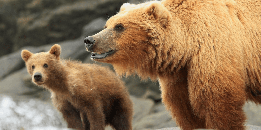 This is a true story about a mama brown bear carrying her wounded cub in her teeth.