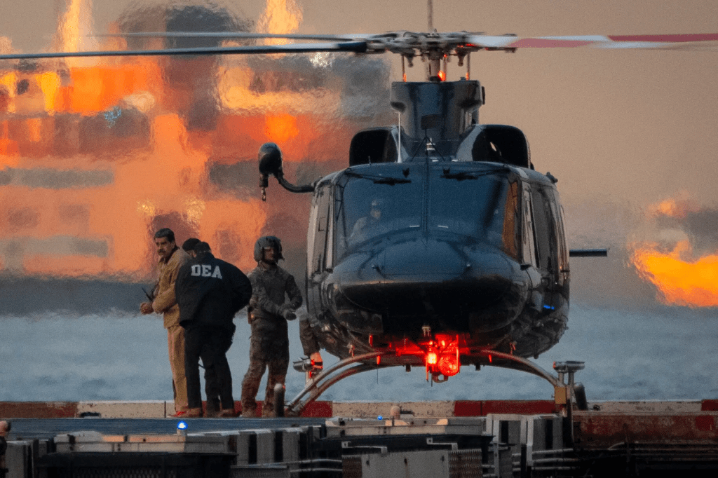 The photo is of Nicolas Maduro arriving by helicopter on the roof of the courthouse.
