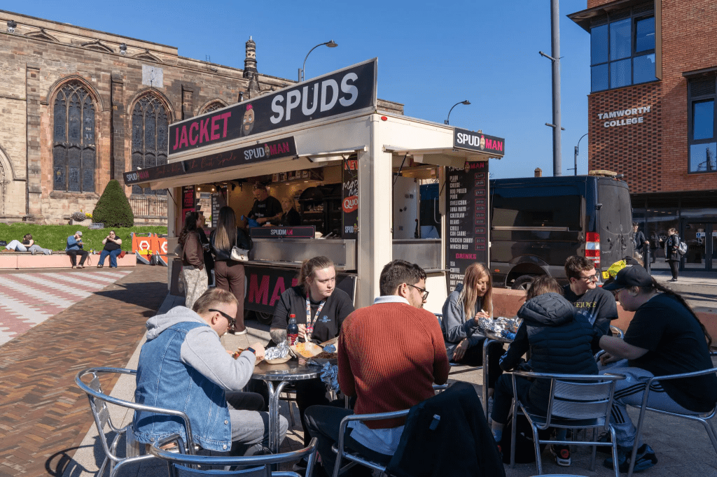 That’s how long it might take to buy a baked potato with a filling of your choice.
